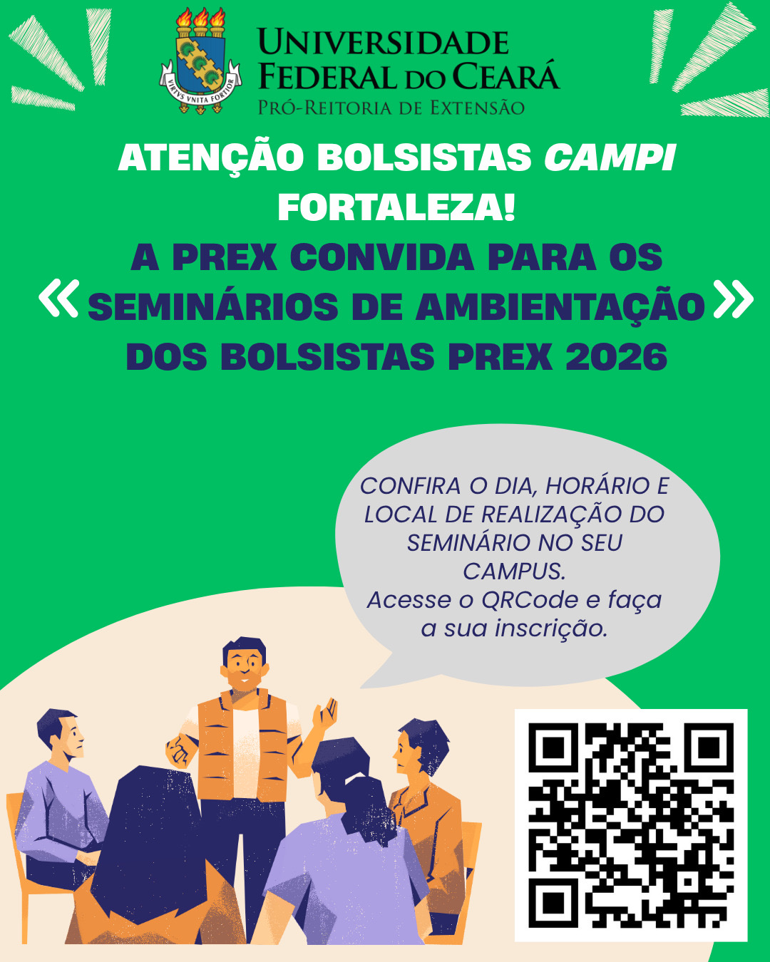 Atenção extensionistas! A PREX divulga as datas dos Seminários de Ambientação dos Bolsistas de Extensão dos Campi de Fortaleza– UFC