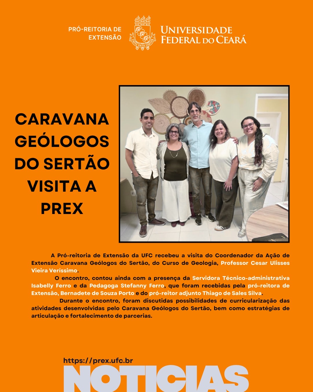 A Pró-reitoria de Extensão da UFC recebeu a visita do Coordenador da Ação de Extensão Caravana Geólogos do Sertão, do Curso de Geologia, Professor Cesar Ulisses Vieira Veríssimo.