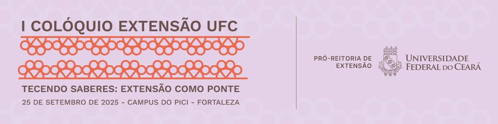 A Pró-Reitoria de Extensão da UFC, por meio da Coordenadoria de Formação e Curricularização de Extensão – FORMACE/PREX, promoverá o I Colóquio de Extensão Universitária, com o tema “Tecendo Saberes: Extensão como Ponte”. O evento será realizado no dia 25 de setembro de 2025, turnos manhã e tarde, no Centro de Convivência da PROCULT, no Campus do Pici.